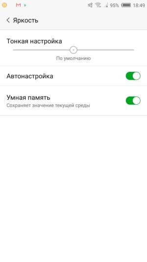 При ручном управлении яркостью и при выводе белого поля во весь экран максимальное установившееся значение яркости составило около 520 кд/м², минимальное — 5,5 кд/м². Максимальная яркость очень высокая, значит, учитывая отличные антибликовые свойства, читаемость даже в солнечный день вне помещения должна быть на хорошем уровне. В полной темноте яркость можно понизить до комфортного значения. В наличии автоматическая регулировка яркости по датчику освещенности (он находится справа от прорези фронтального громкоговорителя). В автоматическом режиме при изменении внешних условий освещенности яркость экрана как повышается, так и понижается. Работа этой функции зависит от положения регулировки яркости. Дополнительно можно включить опцию Запомнить настройки среды, тогда пользователь может попытаться выставить желаемый уровень яркости в текущих условиях. Эксперименты показали, что какая-то обучаемость присутствует, но оптимальный с нашей точки зрения результат получается уже в том случае, если просто сдвинуть ползунок яркости на максимум, а опцию Запомнить настройки среды не включать. Тогда в полной темноте функция автояркости уменьшает яркость до 13 кд/м², в условиях освещенного искусственным светом офиса (примерно 550 лк) устанавливает на 120-180 кд/м², в очень ярком окружении (соответствует освещению ясным днем вне помещения, но без прямого солнечного света — 20000 лк или немного больше) повышает до 520 кд/м². Получается, что функция автоподстройки яркости работает адекватно и в какой-то мере позволяет пользователю настраивать свою работу под индивидуальные требования. Только на минимальном уровне яркости есть значимая модуляция подсветки с частотой 2,4 кГц. Частота очень высокая, поэтому видимое мерцание подсветки отсутствует в любом случае.