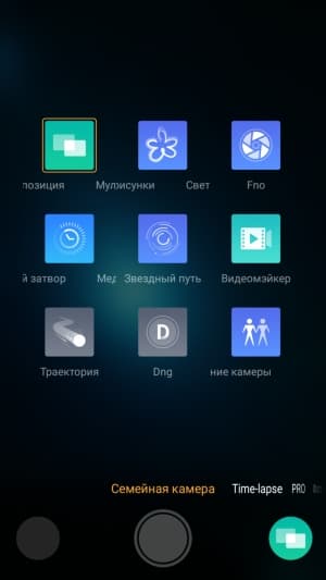 В настройках, как обычно, имеются автоматический и ручной режимы управления съемкой, в ручном можно выставлять ISO, баланс белого, менять тип фокусировки. Управление сторонними приложениями через Camera2 API не поддерживается, нет возможности записи в RAW.