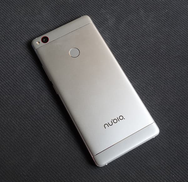 Передняя панель прикрыта 2.5D-стеклом Gorilla Glass 3 с покатыми краями, под стеклом расположился привычный набор элементов: датчики, фронтальная камера и светодиодный индикатор событий, в виде «дышащего» кружка с красной подсветкой под экраном — это фирменный элемент оформления всех смартфонов Nubia. Две сенсорные кнопки по бокам от кружка также имеют подсвечивающиеся пиктограммы в виде обычных точек, поэтому назначение кнопок можно поменять на свой вкус.