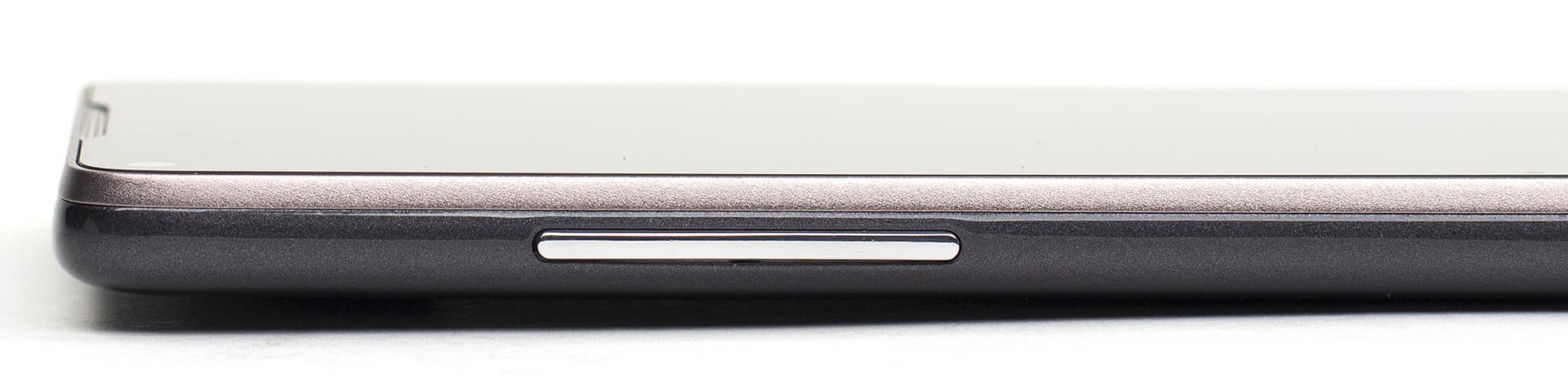 Другая клавиша — регулировки громкости — располагается на левой грани. Все кнопки имеют блестящее хромированное напыление, клавиши достаточно большие и отлично нащупываются вслепую. Ход у кнопок мягкий и отчетливый, никаких претензий к механическим элементам управления нет.