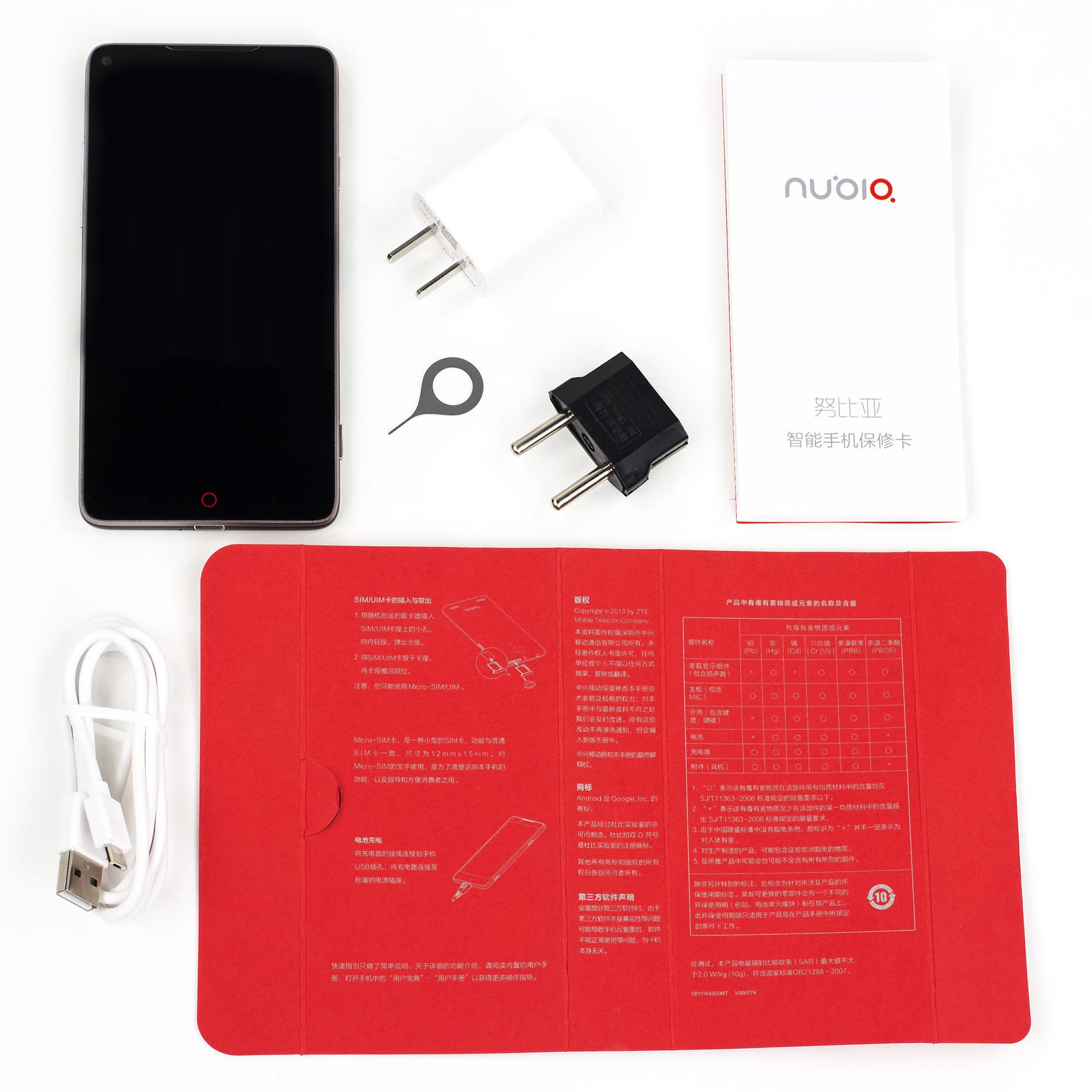 Новый флагман линейки ZTE nubia получил в качестве упаковки точно такую же по виду и строению коробку, в которых поставляются его миниатюрные собратья серии nubia mini. Это совсем небольшая, практически размером с сам смартфон коробочка из твердого белого картона с красной прослойкой посередине. Упаковка выглядит стильно и дорого за счет того, что на ее поверхностях отсутствуют какие-либо картинки и нанесено минимум необходимой информации мелким текстом.