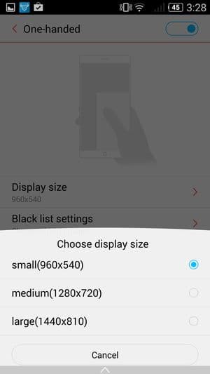 Любопытно выглядит возможность уменьшения в размере рабочего пространства экрана: при включении данной функции в углу появляется маленькая копия рабочего стола, до любого уголка которого теперь можно дотянуться пальцем одной руки. Причем поддерживается несколько различных возможных размеров.