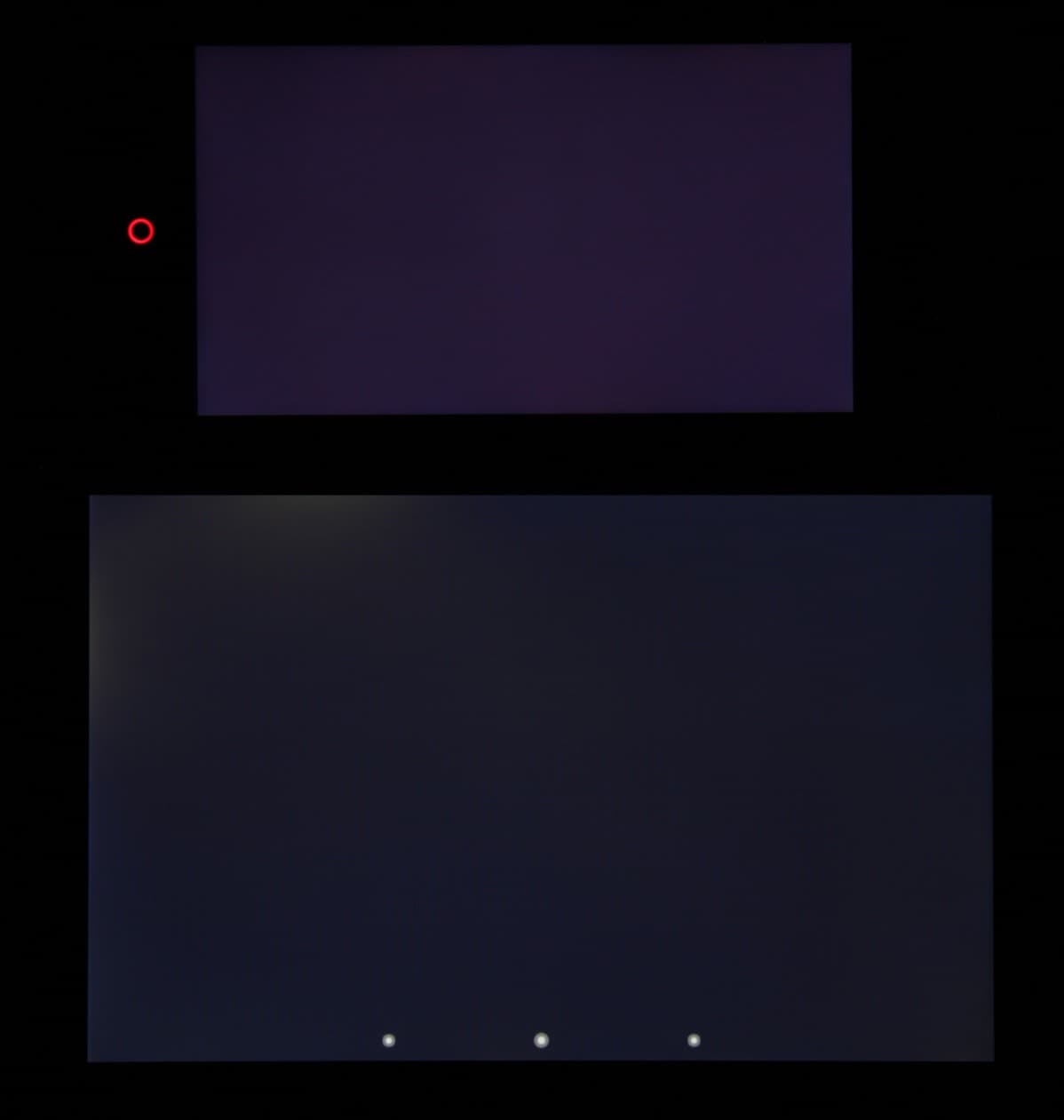 При перпендикулярном взгляде равномерность черного поля очень хорошая, но черное поле имеет выраженный оттенок: