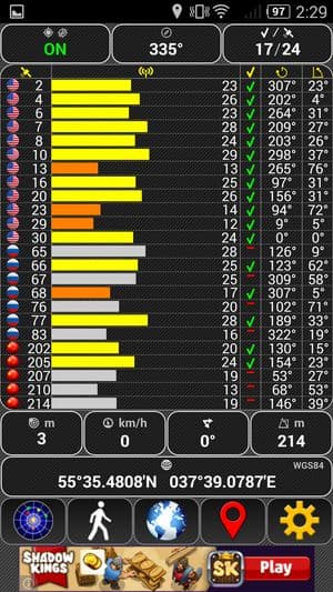 Поддержки технологии NFC мы в нашем тестовом экземпляре не обнаружили, хотя некоторые продавцы включают данный параметр в список характеристик модели на своих сайтах. К порту USB здесь можно подключать внешние устройства (будь то мышки, клавиатуры или флэшки). Навигационный модуль поддерживает как GPS, так и отечественный Глонасс, а также китайскую сеть Beidou (спутники Beidou обозначены красными флажками).