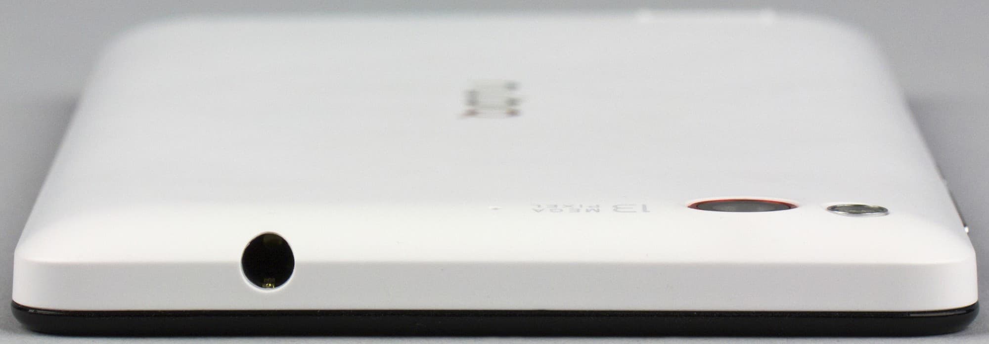 Аудиоразъем для наушников (3,5 мм) находится на верхнем торце. Никакими заглушками или крышками гнезда и разъемы аппарата не прикрыты, поскольку смартфон не обеспечен защитой от воды и грязи. Крепления для ремешка на корпусе устройства также не обнаружено.