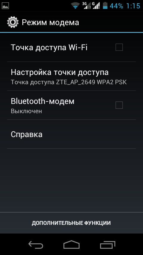 Подключение к роутеру TP-Link TL-WR1043N успешно состоялось при его работе в режиме 802.11n. Теоретическая скорость обмена составила 65 Мбит/с, практическая — 16 Мбит/с. Смартфон ZTE V880G поддерживает режимы работы Wi-Fi 802.11b/g/n, а также способен выступать в качестве точки доступа для других устройств.