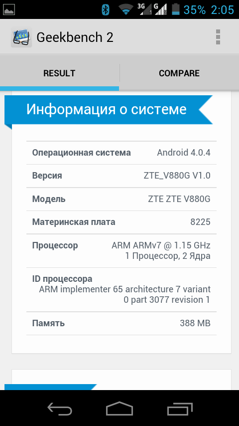 Тест Geekbench зафиксировал отставание ZTE V880G от конкурентов из клана MediaTek.