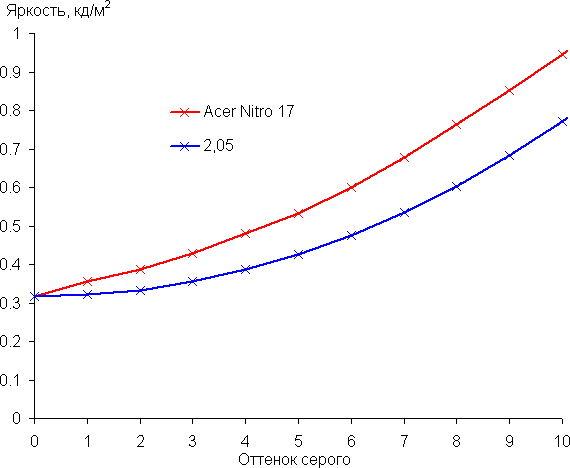 Внешняя поверхность матрицы черная жесткая и полуматовая (зеркальность выражена). Какие-либо специальные антибликовые покрытия или фильтр отсутствуют, нет и воздушного промежутка. При питании от сети или от батареи и при ручном управлении яркостью (автоматической подстройки по датчику освещенности нет, хотя датчик, вроде бы, и есть) ее максимальное значение составило 352 кд/м² (в центре экрана на белом фоне). Максимальная яркость довольно высокая, поэтому за ноутбуком как-то можно будет работать/играть на улице ясным днем, если расположиться в тени.