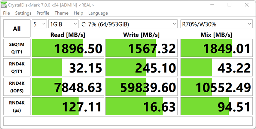 | Накопители | 1 ТБ NVMe SSD SK Hynix HFS001TEJ9X125N, PCIe 4.0 x4, M.2 можно установить второй накопитель в свободный слот M.2 | |