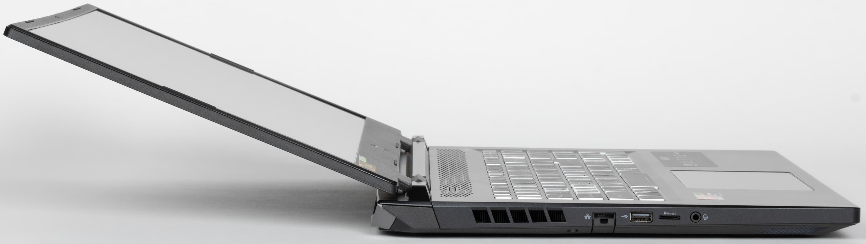 Мы испытали игровой ноутбук среднего класса, в котором для сохранения конкурентоспособной цены применен ряд конструктивных ухищрений, которые, впрочем, совершенно не критичны. Здесь использован процессор AMD Ryzen 9 7940HS. Экран имеет соотношение сторон 16:9 вместо модных ныне 16:10, но с разрешением 2560×1440 и хорошими показателями яркости, задержки вывода и цветового охвата. Вместо более дорогого 2,5-гигабитного адаптера Ethernet установлен гигабитный, а вместо беспроводного Intel AX210/211 — Mediatek 7922A22M (впрочем, соответствующий классу Wi-Fi 6E, а не Wi-Fi 6). Производитель не стал экономить на объеме ОЗУ (32 ГБ двухканальной DDR5) и на вместимости системного NVMe-накопителя (1 ТБ PCIe 4.0 ×4). В рамках апгрейда можно заменить адаптер Wi-Fi, увеличить объем памяти вплоть до 64 ГБ и установить дополнительный NVMe-накопитель во второй слот. На задней панели машины имеются два порта USB 4, работающие на адекватных скоростях и обеспечивающие питание внешних устройств и вывод видео. С их помощью и при учете наличия HDMI можно подключить к машине одновременно три внешних монитора.