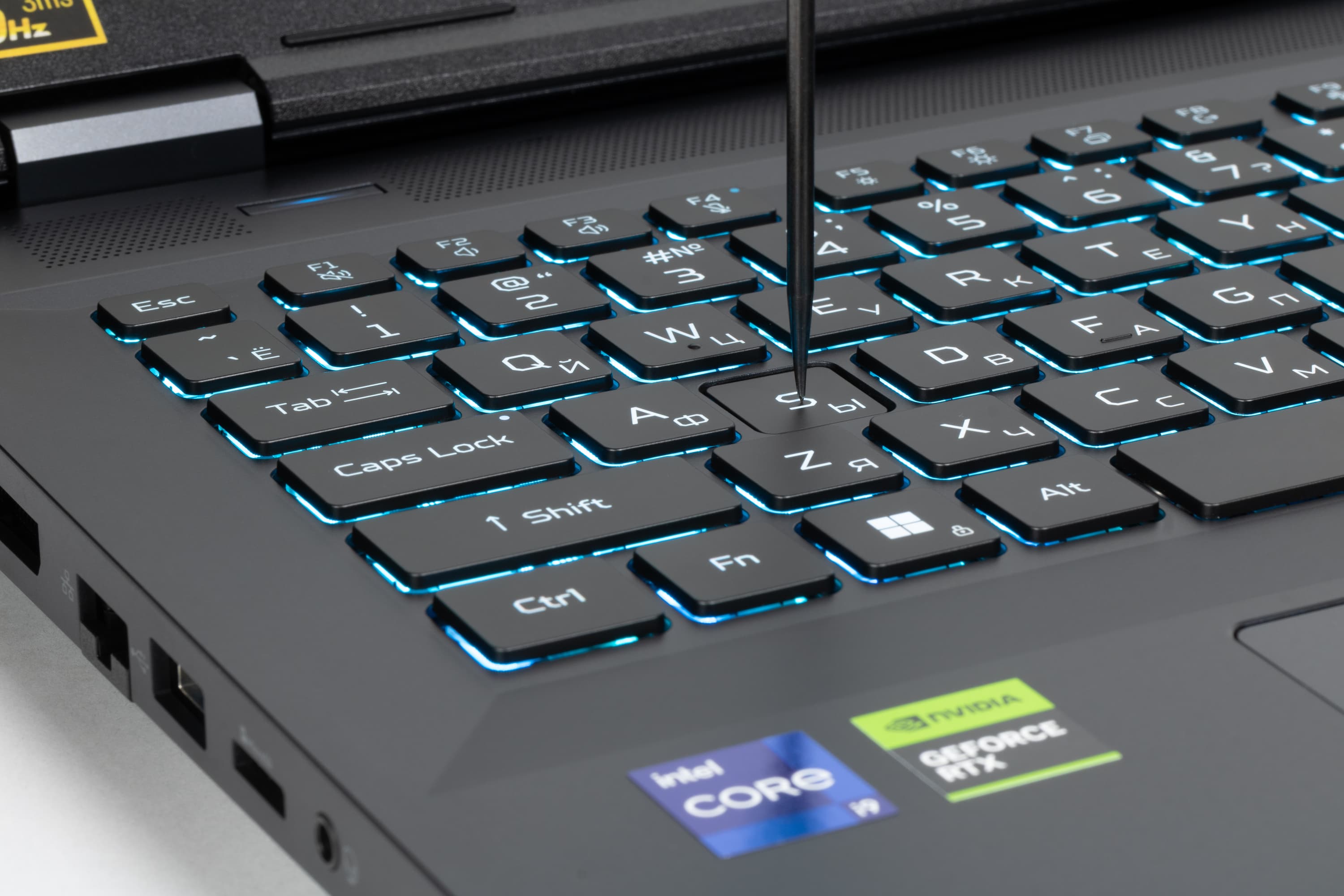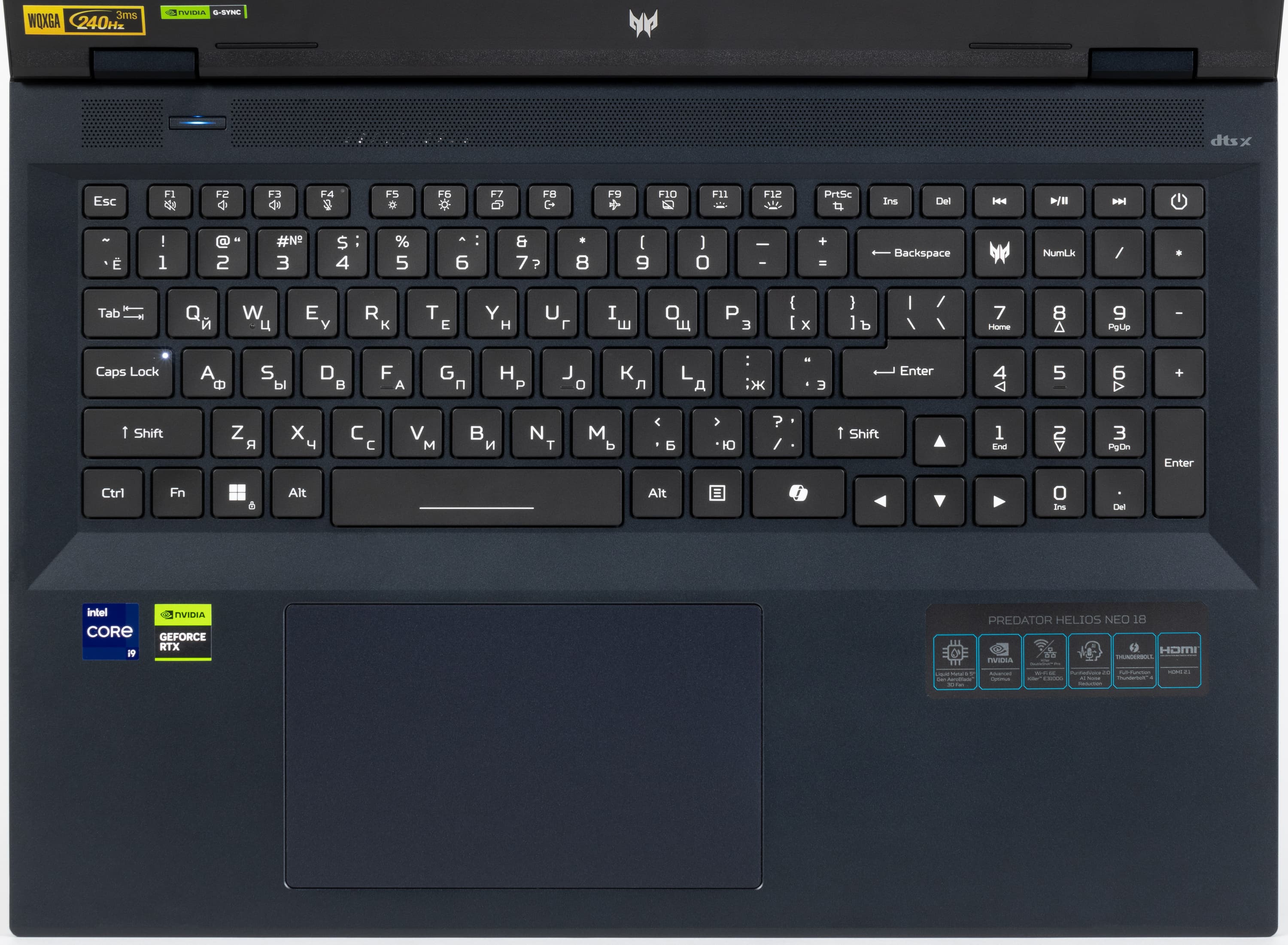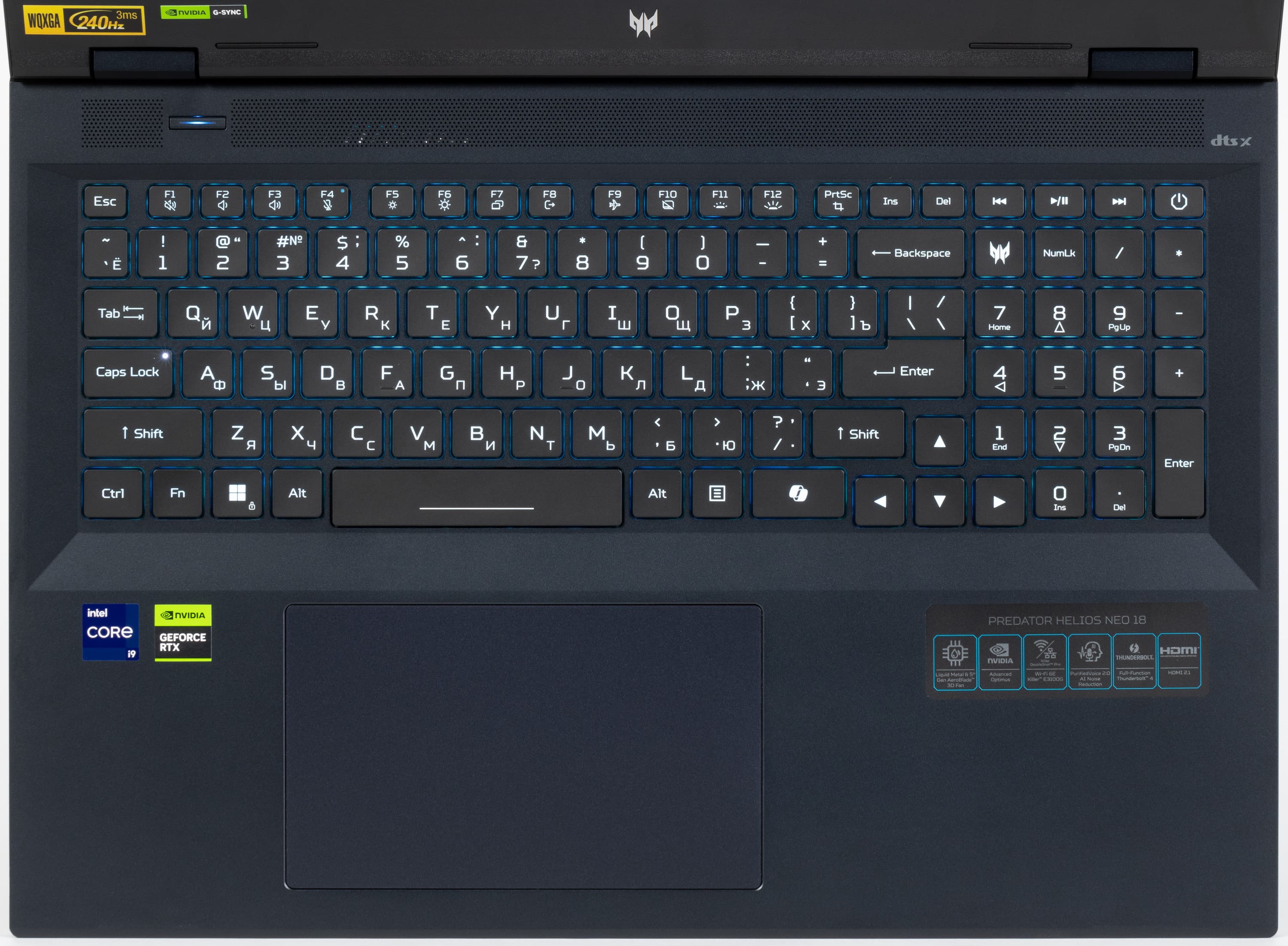 Клавиатура оснащена динамической RGB-подсветкой. Предусмотрено четыре уровня яркости (пятое состояние — подсветка выключена). Повысить яркость можно нажатием аккорда «Fn+F12», уменьшить — «Fn+F11».