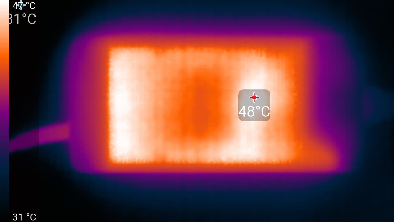 Внешняя поверхность матрицы черная жесткая и полуматовая (зеркальность хорошо выражена). Какие-либо специальные антибликовые покрытия или фильтр отсутствуют, нет и воздушного промежутка. При питании от сети или от батареи и при ручном управлении яркостью (автоматической подстройки по датчику освещенности нет) ее максимальное значение составило 510 кд/м² (в центре экрана на белом фоне). Максимальная яркость высокая, поэтому за ноутбуком как-то можно будет работать/играть на улице ясным днем, и даже под прямыми солнечными лучами на экране что-то можно будет рассмотреть.