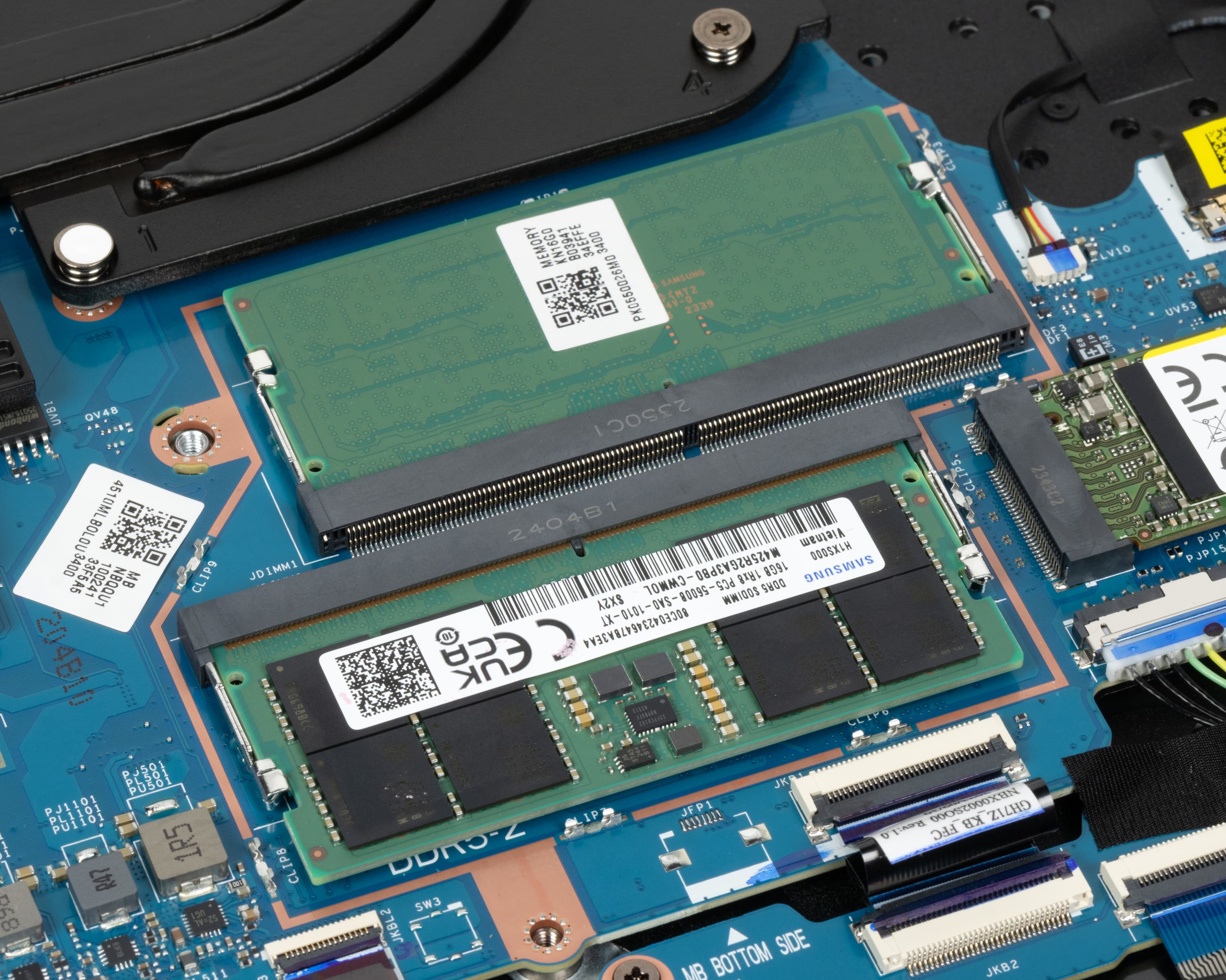 Ноутбук экипирован 32 ГБ оперативной памяти, которая работает в двухканальном режиме и набрана из двух модулей SO-DIMM DDR5-5600 по 16 ГБ (Samsung M425R2GA3PB0).