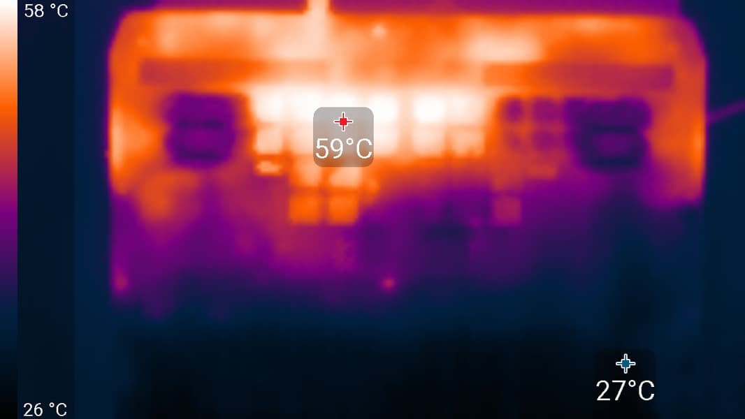 Как выяснилось в ходе тестирования под максимальной нагрузкой, пиковый отбор мощности видеокартой при разгоне достигает 112 Вт (при этом, возможно, происходит перегрев графического процессора, так как его температура возрастает до 89 °C), а в стабильном режиме потребление составляет 105 Вт. Низкоуровневые параметры видеоподсистемы видны на скриншоте приложения GPU-Z.