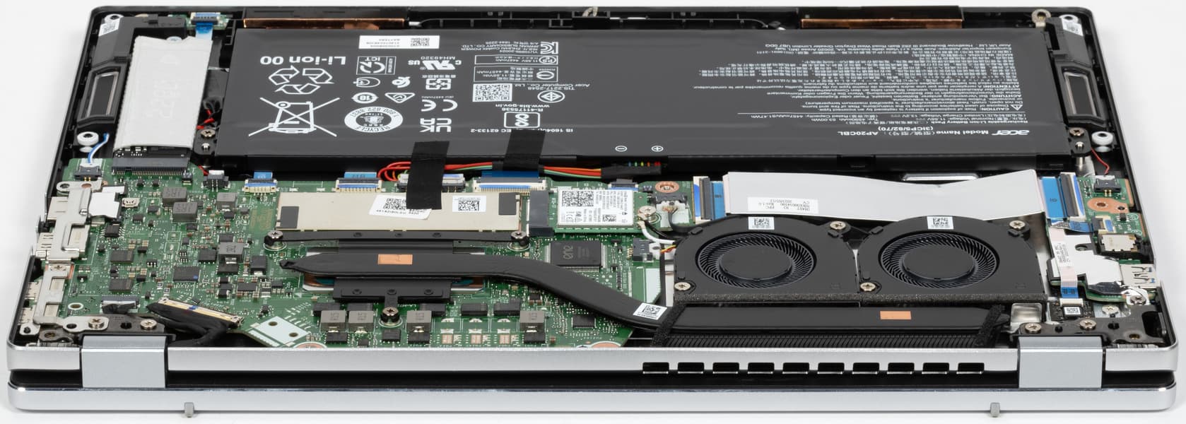 Если умерить требования наблюдателя в соответствии с балансом цены и возможностей ноутбука, нужно признать, что мы имеем дело со вполне приемлемым вариантом накопителя. К тому же спектр задач Acer Swift Go 14 явно не требует экстремально высокой производительности. Второго слота для дополнительного SSD нет.