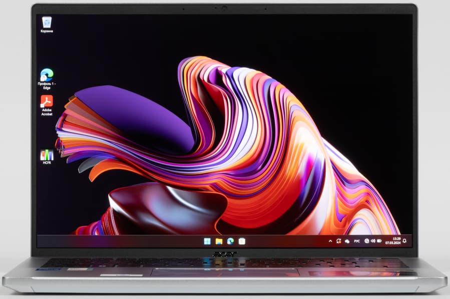 В Acer Swift Go 14 используется 14-дюймовая OLED-матрица с разрешением 2880×1800 (отчет edid-decode). Для нее обещаны соответствие критериям VESA DisplayHDR 500 True Black, цветовой охват 100% пространства DCI-P3 и время отклика менее 0,2 мс.
