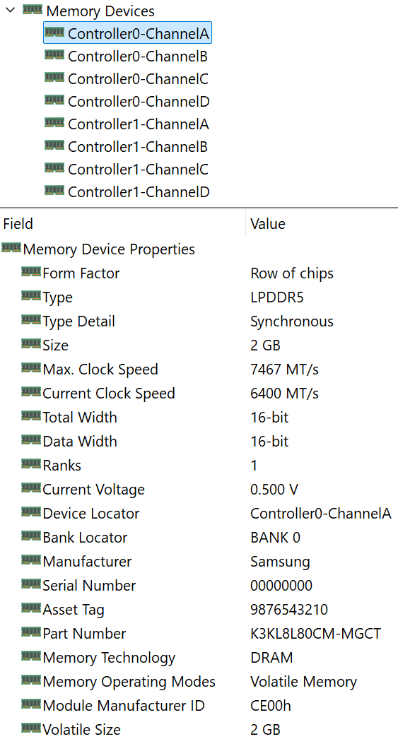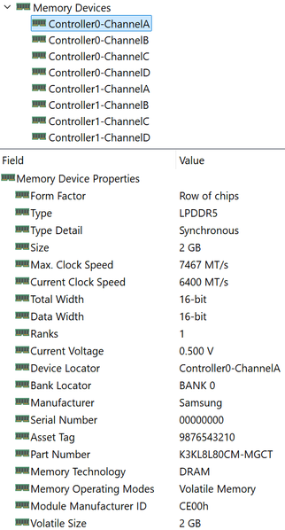 | Оперативная память | 16 ГБ LPDDR5 (чипы SEC K3KL8L80CM-MGCT распаяны) | |