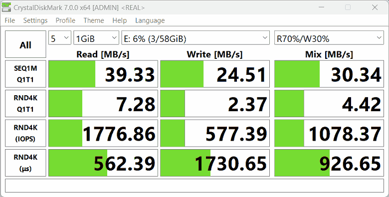 | Скорость копирования данных, с | 42,6 | 5,8 | 8 | 9,6 | 8 | 5,9 |