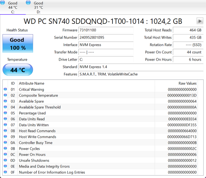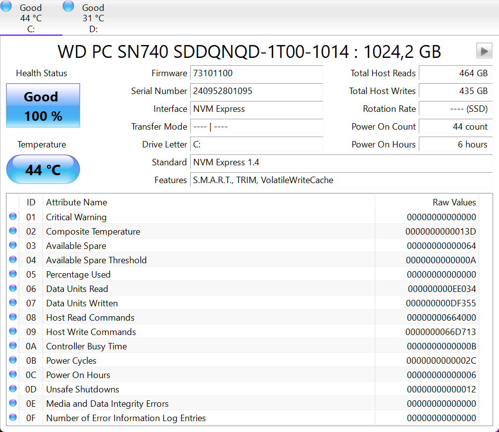 | Накопитель | SSD 1 ТБ (WD PC SN740 SDDQNQD-1T00-1014, M.2 2280, NVMe, PCIe 4.0 x4) есть свободный слот для второго накопителя | |