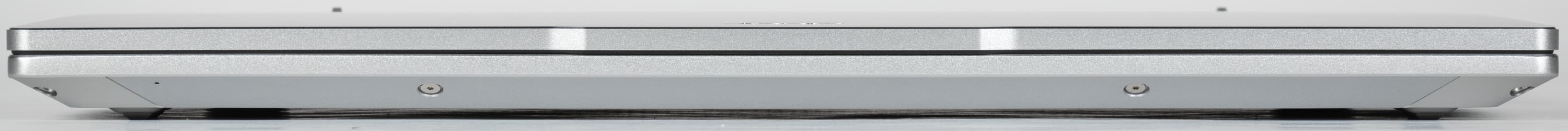 Пластиковая рамка вокруг экрана с учетом кромки металлической наружной крышки имеет ширину по бокам 4,9 мм, вверху по большей части 9,3 мм и 10,8 мм на выступе, где расположена веб-камера с индикатором и шторкой, а также микрофоны, внизу 12 мм до изгиба края крышки.
