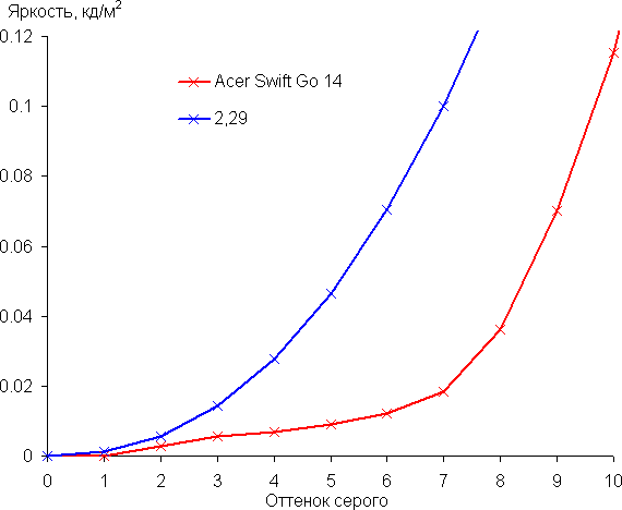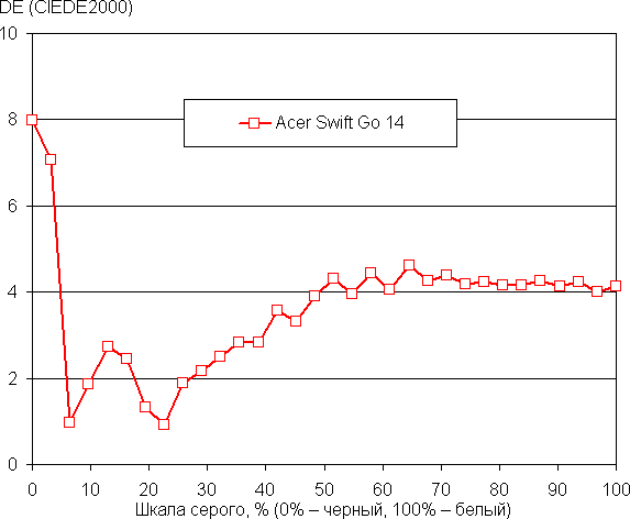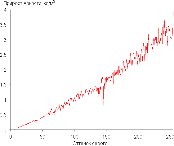 Вернемся к экрану тестируемого ноутбука. Если настройка яркости равна 0%, то яркость снижается до 18 кд/м². В полной темноте яркость его экрана получится понизить до комфортного уровня. Фактическая яркость очень нелинейно зависит от значения настройки.