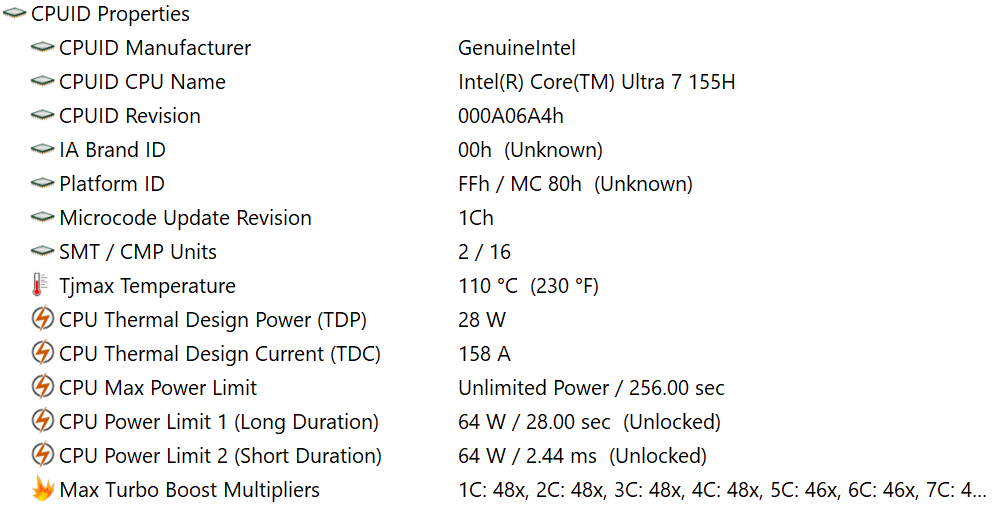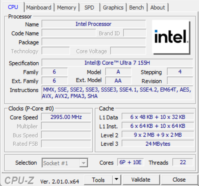 | Процессор | Intel Core Ultra 7 155H (6+8+2 ядер/22 потока, до 1,4/4,8 ГГц, 20—65/115 Вт) | |