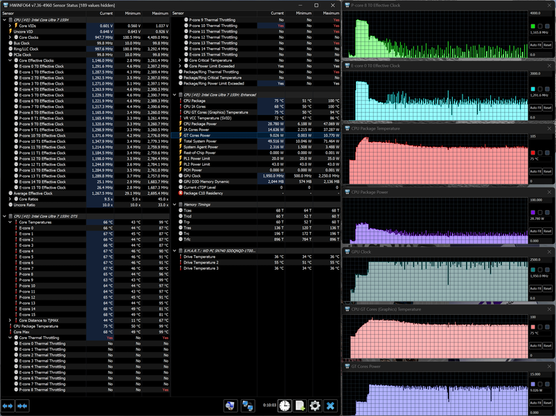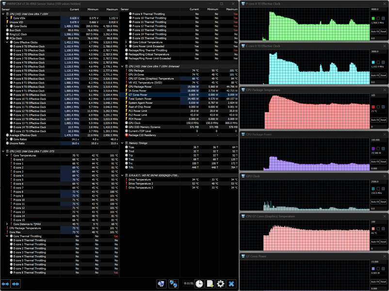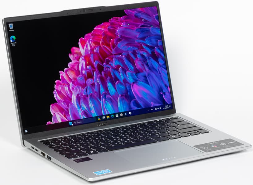 Для сравнения возьмем еще один протестированный нами ноутбук из той же линейки, но другой модификаци — Acer Swift Go 14 (SFG14-71-72QX) с процессором Intel Core i7-1355U (2+8 ядер/12 потоков, до 5/3,7 ГГц, TDP 12—15 Вт и до 55 Вт при Turbo Boost), ОЗУ 16 ГБ LPDDR5, SSD WD 1 ТБ PCIe 4.0 ×4. Понятно, что это гораздо менее производительная конфигурация, чем исследуемый вариант, но хочется показать, до какой степени могут быть разными внешне очень похожие ноутбуки Acer Swift Go 14.
