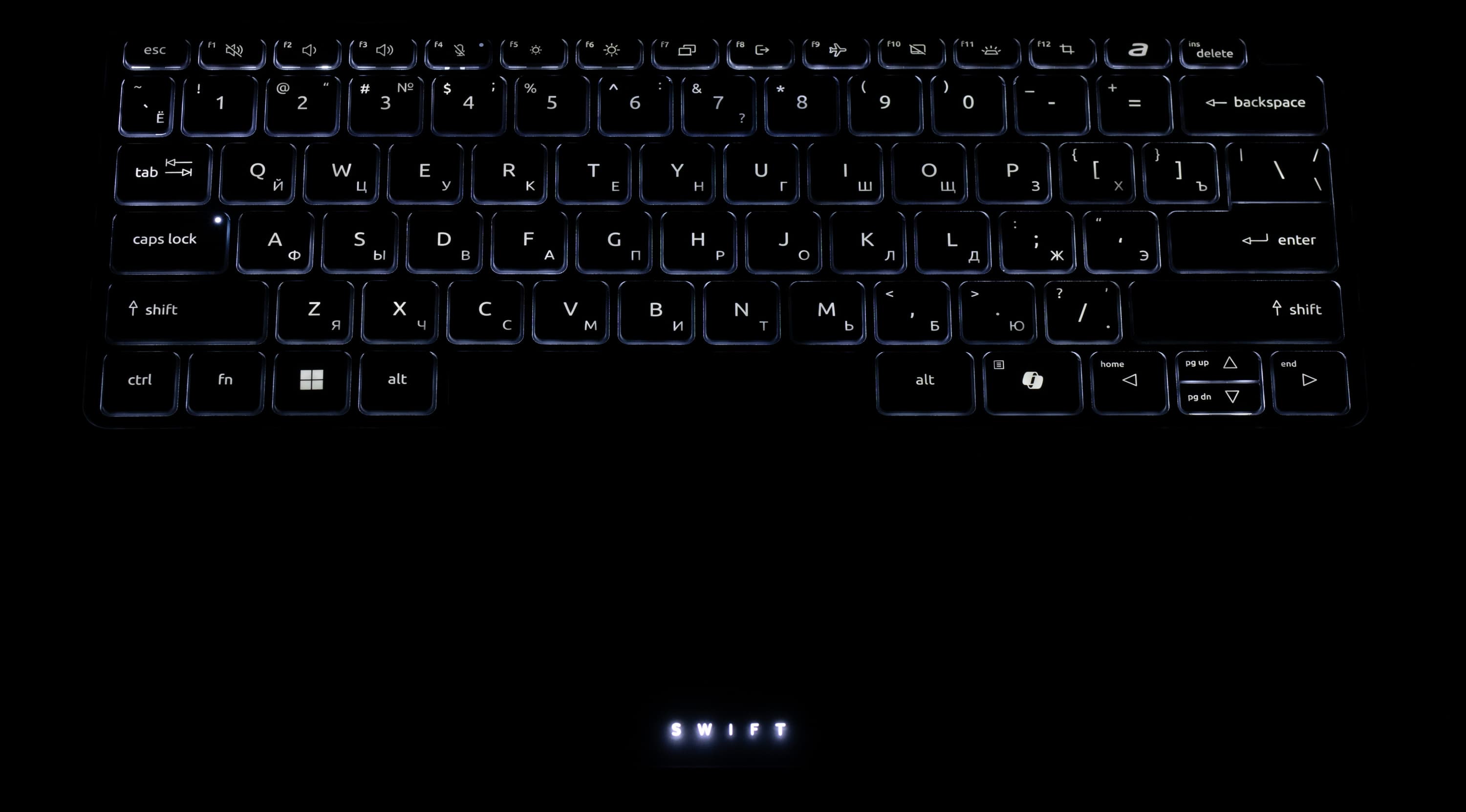 Тачпад довольно большой — 126×78 мм ( у ранее рассмотренной модели — 104×66 мм). Он расположен практически точно в центре передней части корпуса. Его поверхность слегка заглублена и покрыта для защиты стеклом Corning Gorilla Glass, через которое при включенном питании видна подсвечиваемая надпись «Swift». Выделенных клавиш нет, но левый и правый ближние его края вполне могут работать как соответствующие кнопки мыши. Предусмотрено сочетание кнопок для его быстрого отключения.