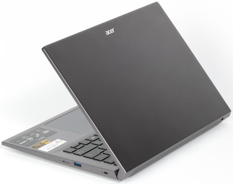 Максимальный угол раскрытия Acer Swift X 14 составляет примерно 142°. В закрытом состоянии крышка удерживается хорошо. Петли тугие, но при открывании одной рукой корпус не приподнимается.