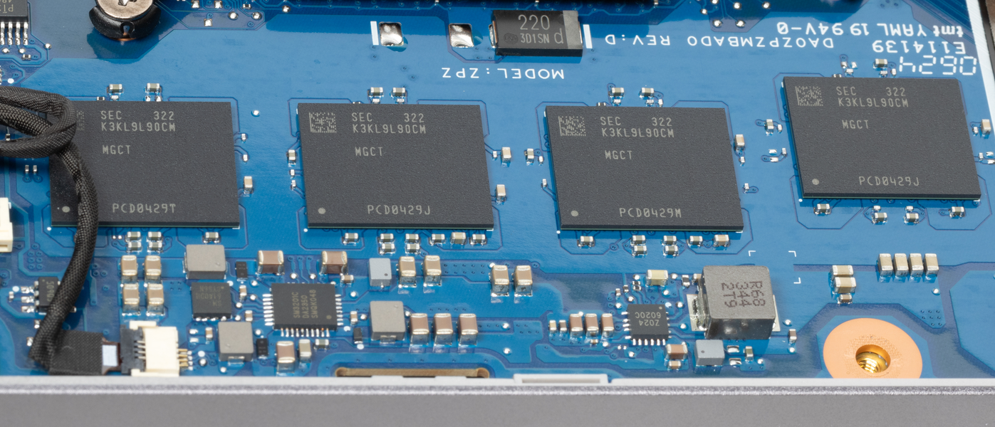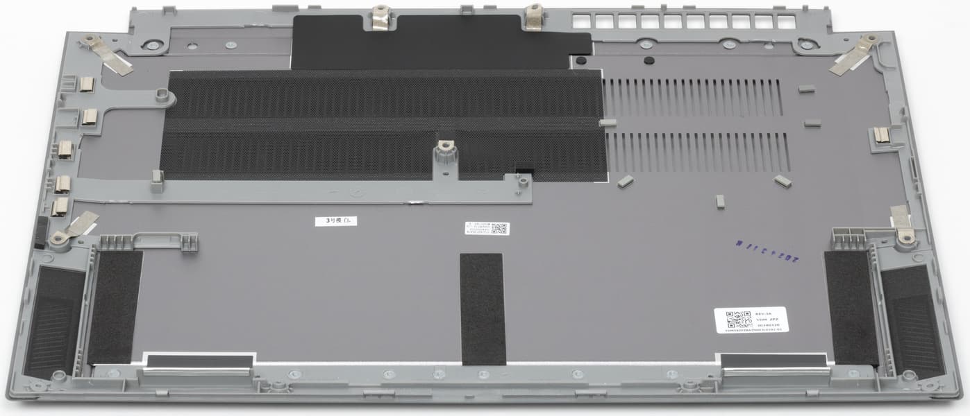 Корпус изготовлен из сплава алюминия и магния. Все поверхности обладают шероховатой фактурой и неплохо противостоят появлению на них отпечатков пальцев. Особым признаком устройства являются массивные петли. На крышке ближе к ее передней кромке расположен зеркально-глянцевый логотип производителя.