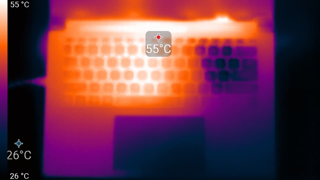 Привлекательными компонентами ноутбука для нас являются экран OLED с разрешением 2,8K, вполне современный CPU, достаточно привлекательная видеокарта (когда бы не ее пониженное потребление), 32 ГБ памяти, два порта Thunderbolt 4, которые вкупе с HDMI позволяют подключить к машине одновременно три внешних монитора (но для того, чтобы подключить еще и питание, придется использовать док-станцию).