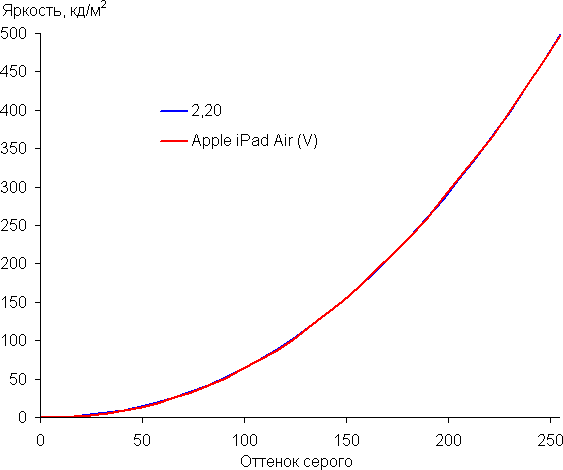 Контрастность (примерно в центре экрана) высокая — порядка 1200:1. Время отклика при переходе черный-белый-черный равно 22 мс (12 мс вкл. + 10 мс выкл.). Переход между полутонами серого 25% и 75% (по численному значению цвета) и обратно в сумме занимает 36 мс. Построенная по 32 точкам с равным интервалом по численному значению оттенка серого гамма-кривая не выявила завала ни в светах, ни в тенях. Показатель аппроксимирующей степенной функции равен 2,20, что равно стандартному значению 2,2. При этом реальная гамма-кривая практически не отклоняется от степенной зависимости: