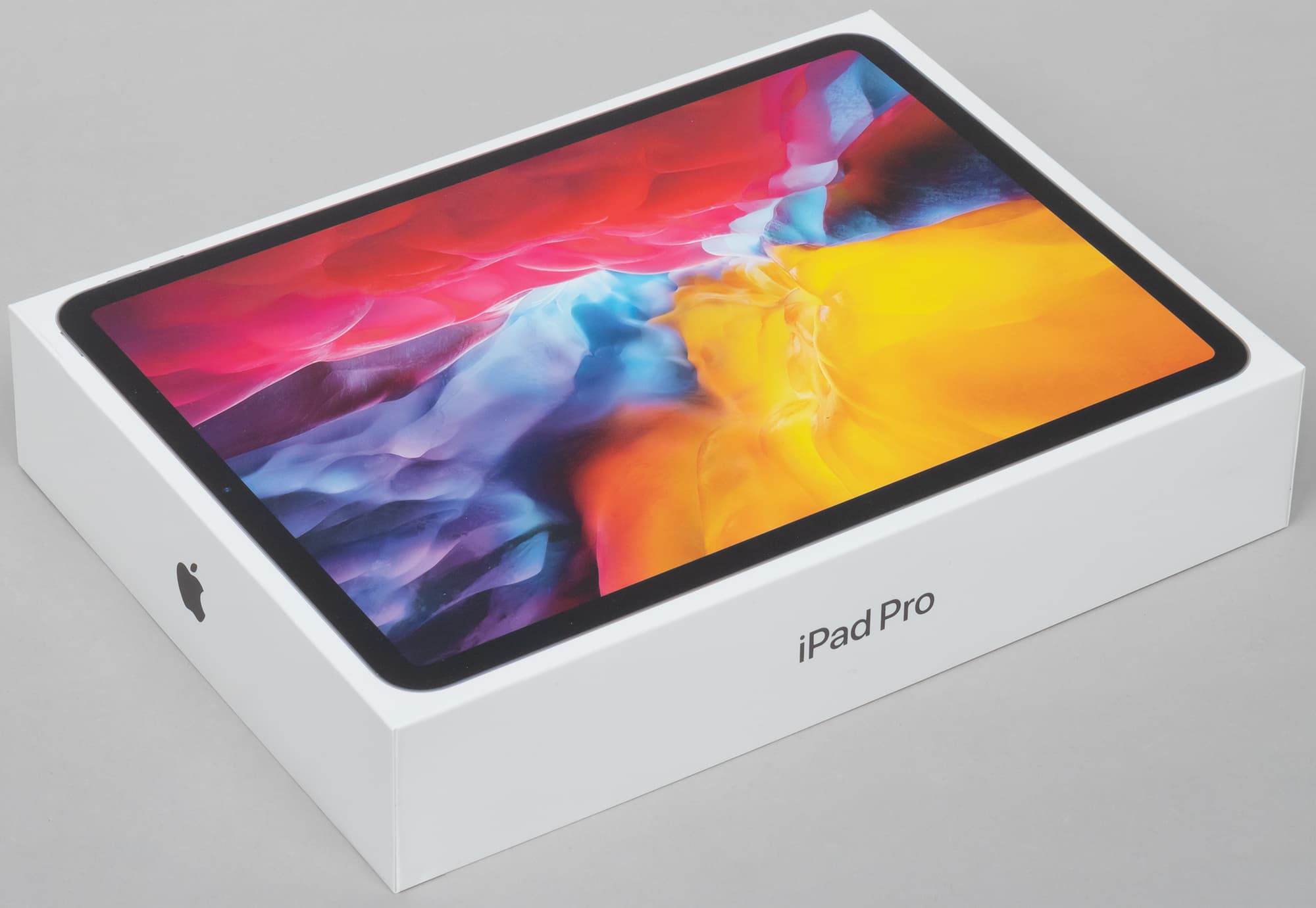 Дизайн коробки выполнен в традиционном для серии iPad Pro дизайне: почти всю внешнюю поверхность бокса заполняет изображение планшета со включенным экраном.