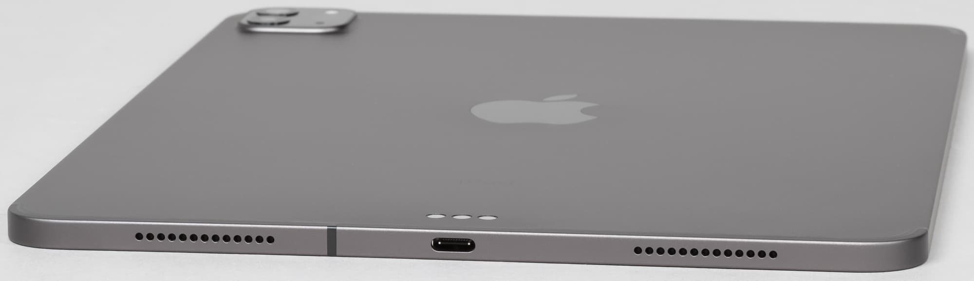 Набор кнопок и разъемов, а также их расположение — опять-таки идентичны. На фото ниже — iPad Pro двух поколений. Хорошо видно, что правая грань у них абсолютно одинакова.