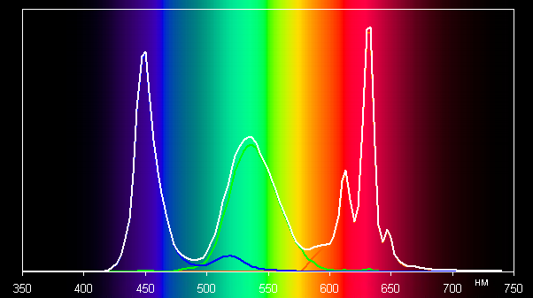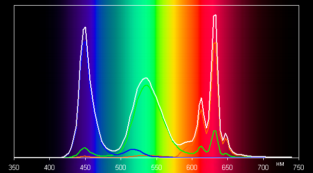Спектры показывают, что программная коррекция в нужной степени подмешивает основные цвета друг к другу: