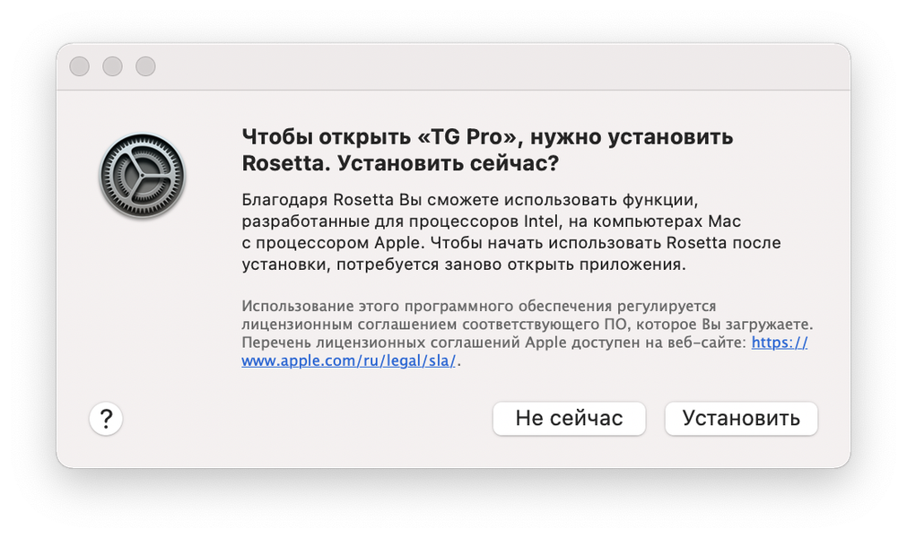 Если приложение не универсальное, то для его первого запуска потребуется установка утилиты Rosetta 2.