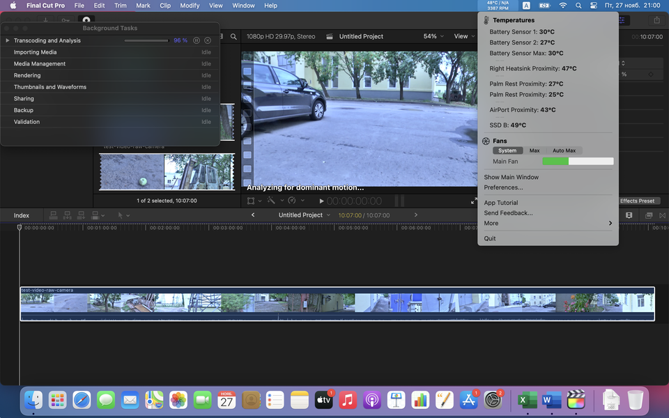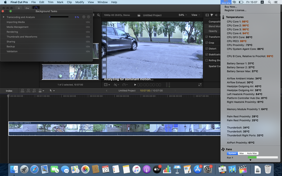 Там даже был вот такой скриншот, снятый во время стабилизации Full HD-видео в Final Cut Pro X. Обратите внимание на температуру ядер.