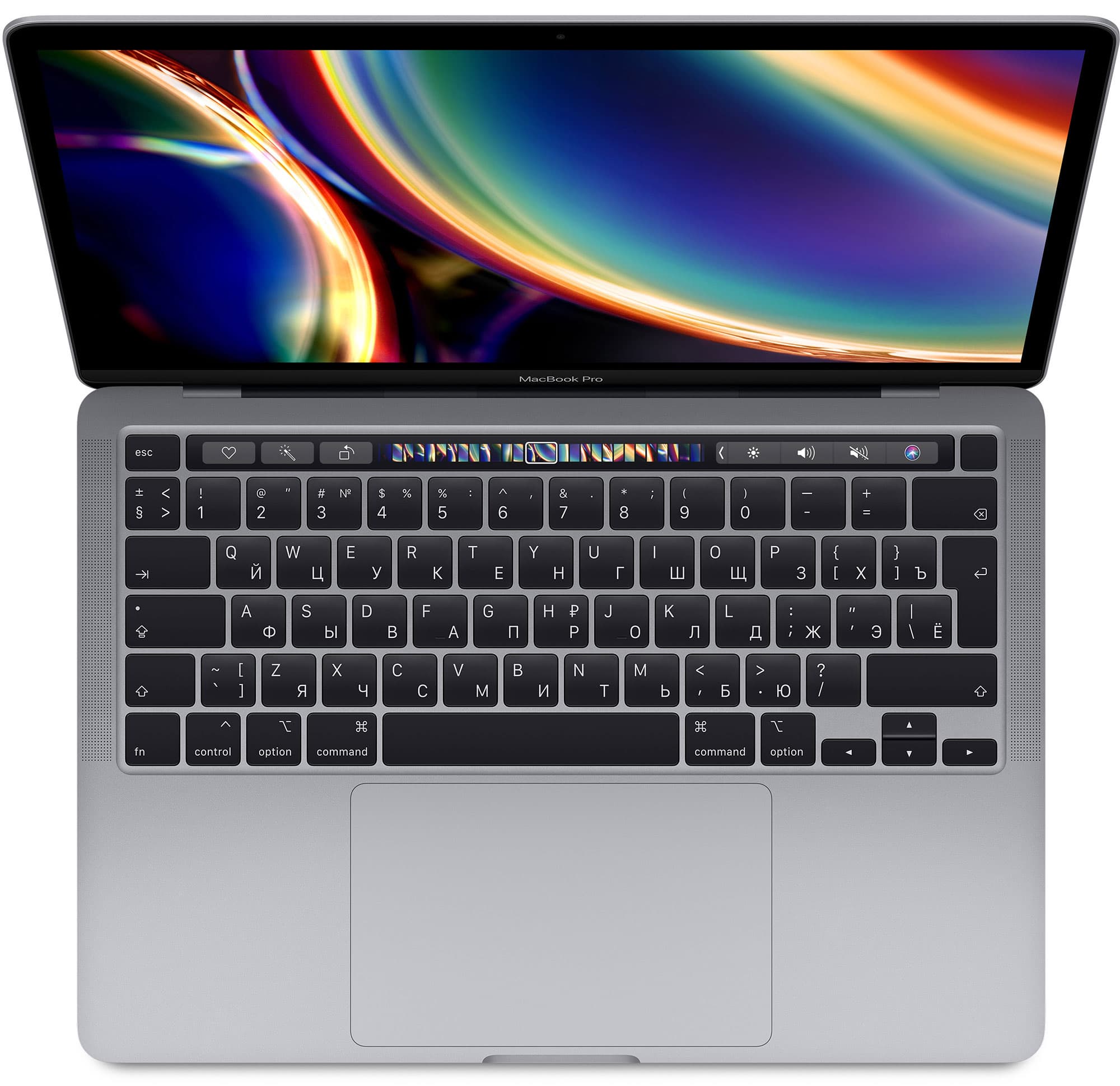 Но что же представляют собой конфигурации с двумя портами Thunderbolt? И почему там процессоры 8-го поколения вместо 10-го, а оперативная память — более медленная, LPDDR3 2133 МГц? Ответ простой: начинка этих моделей осталась прошлогодней, от MacBook Pro 13″ (Mid 2019). У них обновились только клавиатура и Touch Bar.