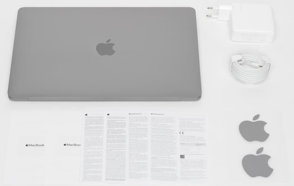 Ноутбук поставляется в традиционной для Apple белой коробке с минималистичным изображением «в профиль» самого устройства на лицевой поверхности.