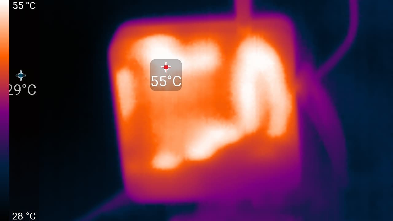 Нагрев снизу довольно высокий, и, если держать ноутбук на коленях, то тепло чувствуется, в жару так работать будет некомфортно. Блок питания нагревается сильно, поэтому при долговременной работе с высокой производительностью обязательно нужно следить, чтобы он не был ничем накрыт: