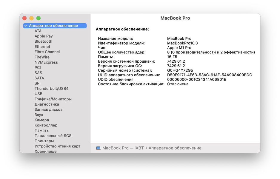 | Графический ускоритель | Apple M1 Pro, 16 ядер | |