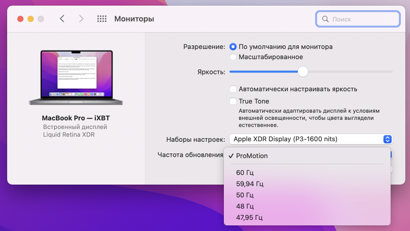 | Экран | Liquid Retina XDR 14,2 дюйма, 3024×1964 | |