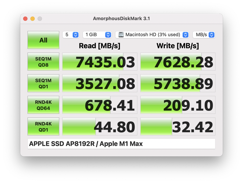 Что ж, SSD в младшей модели линейки Pro существенно медленнее, чем у флагмана — по крайней мере, в операциях записи. С другой стороны, этот результат все равно лучше, чем у десктопов.