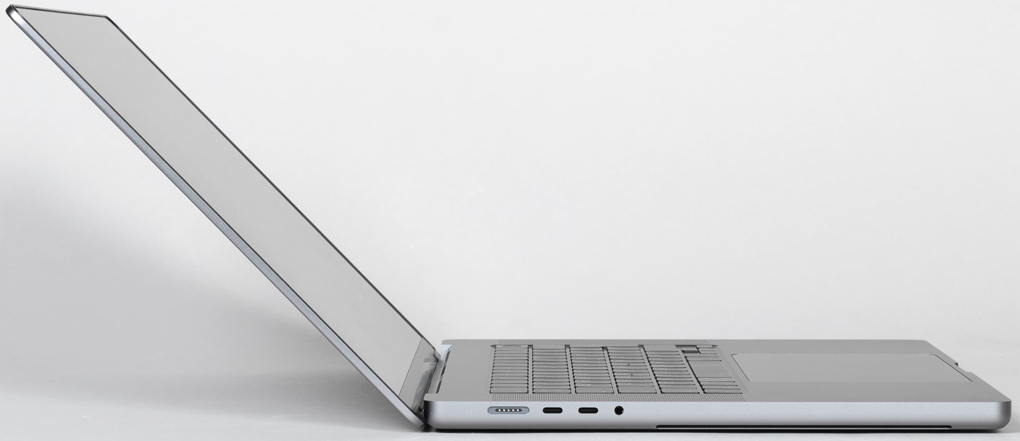 В целом, дизайн MacBook Pro заслуживает самых высоких оценок. С одной стороны, здесь исключительно узкая рамка вокруг экрана (и да, «челку» мы не считаем таким уж недостатком), а это дает бо́льшую площадь экрана при умеренных габаритах, с другой — Apple отказалась от погони за минимальной толщиной и сделала ставку на удобство, вернув разъем HDMI, слот SD и магнитный коннектор MagSafe (но при этом оставив возможность зарядки через USB-C). Прибавим к этому отличную клавиатуру, физические функциональные кнопки (причем крупные), удобный датчик Touch ID и отличные динамики — и получим оптимальное сочетание красоты и функциональности. Давно бы так! Вот только придется все же привыкнуть к тому, что ноутбук стал потолще и потяжелее (впрочем, ненамного: 2,17 кг против 1,96 кг).