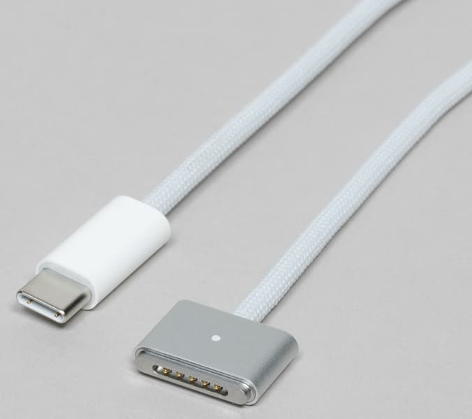 А теперь самое интересное: через USB вы тоже можете заряжать MacBook. Если, например, вы забыли или потеряли кабель, а ноутбук срочно надо зарядить — берем любой зарядник подходящей мощности, кабель USB-C — USB-C, и нет проблем.