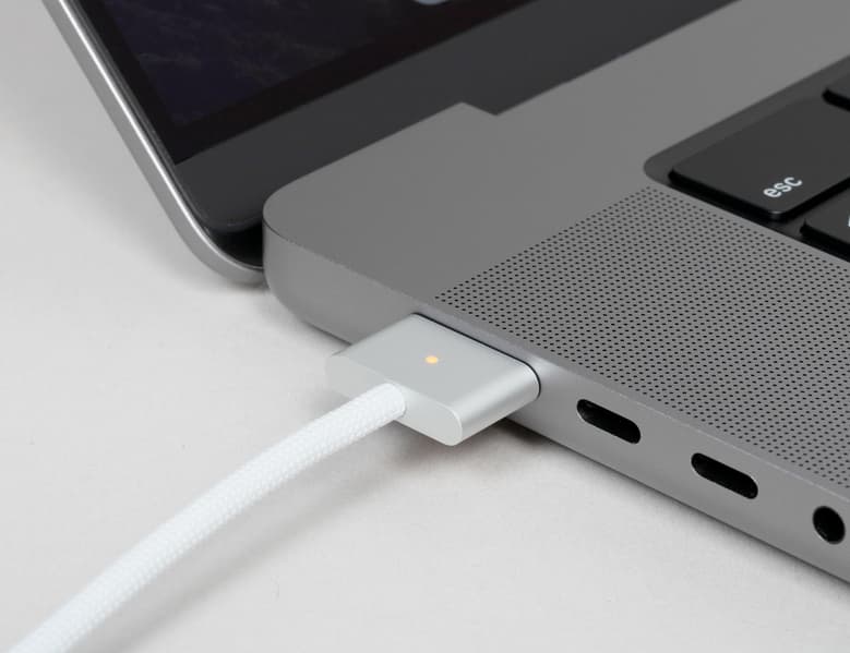На первый взгляд, магнит очень сильный, кабель жестко крепится к ноутбуку. Но мы специально смоделировали ситуацию, когда пользователь задевает кабель — и да, он без проблем отсоединяется, не утягивая ноутбук за собой. Как и полагается.