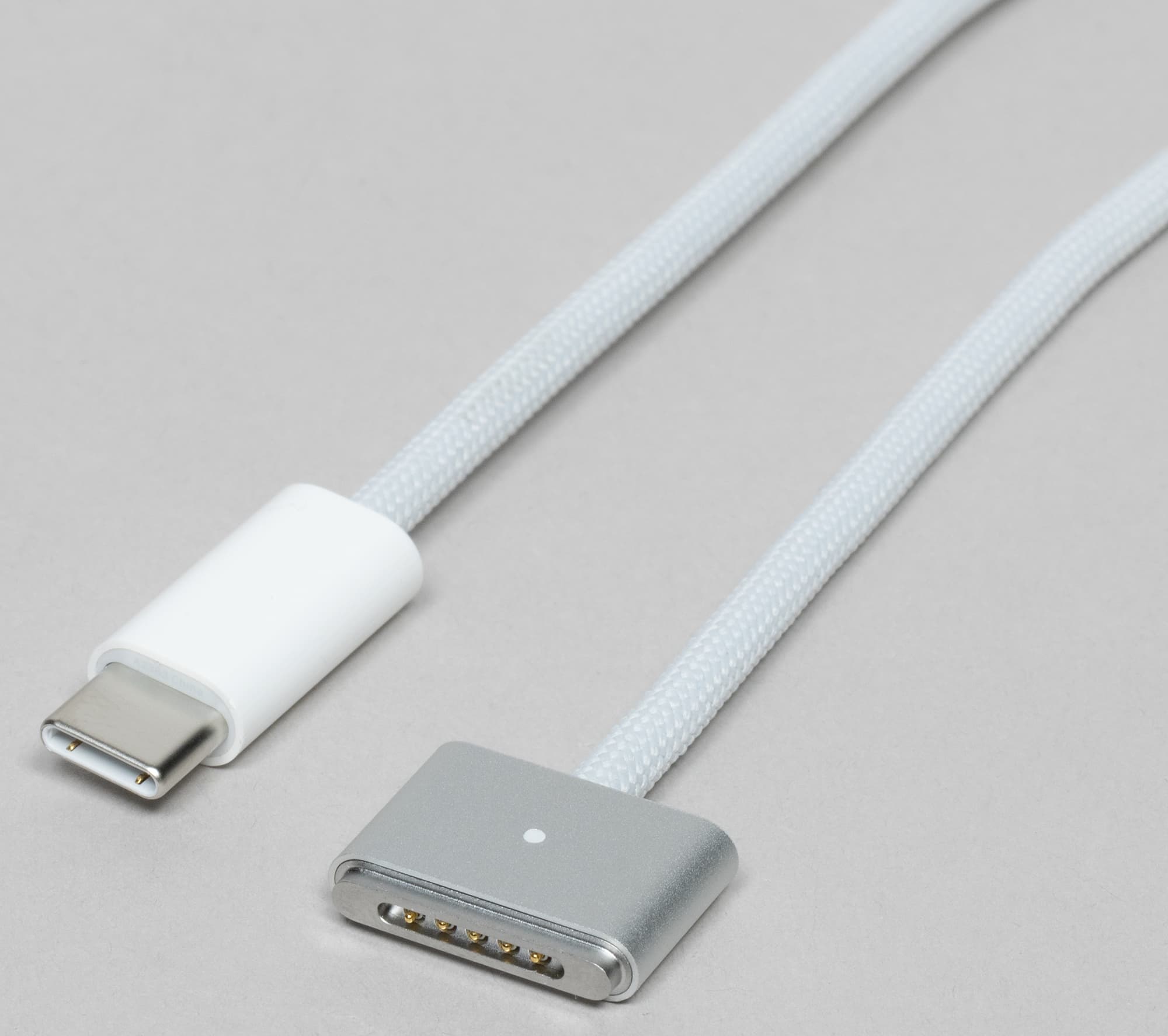 Ну и обратим внимание на коннектор MagSafe 3 вместо USB-C. Об этом мы еще расскажем дальше, но если говорить именно о кабеле, то MagSafe удобнее не только из-за принципа подсоединения, но и благодаря наличию светового индикатора. Он был раньше, до перехода на зарядку через USB-C, и вот теперь он вернулся.