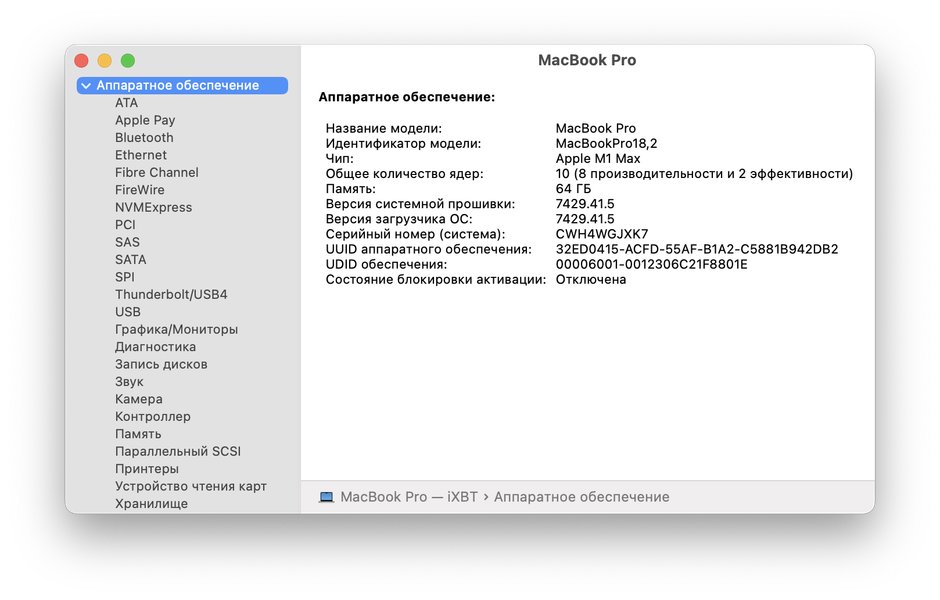 | Графический ускоритель | Apple M1 Max, 32 ядра | |