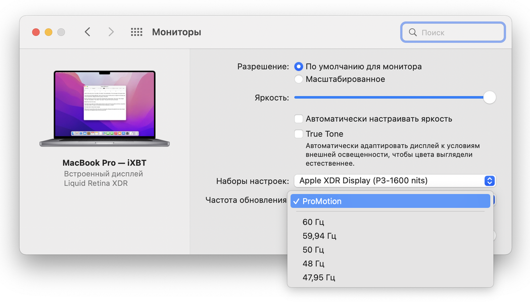 | Экран | Liquid Retina XDR 16,2 дюйма, 3456×2234 | |
