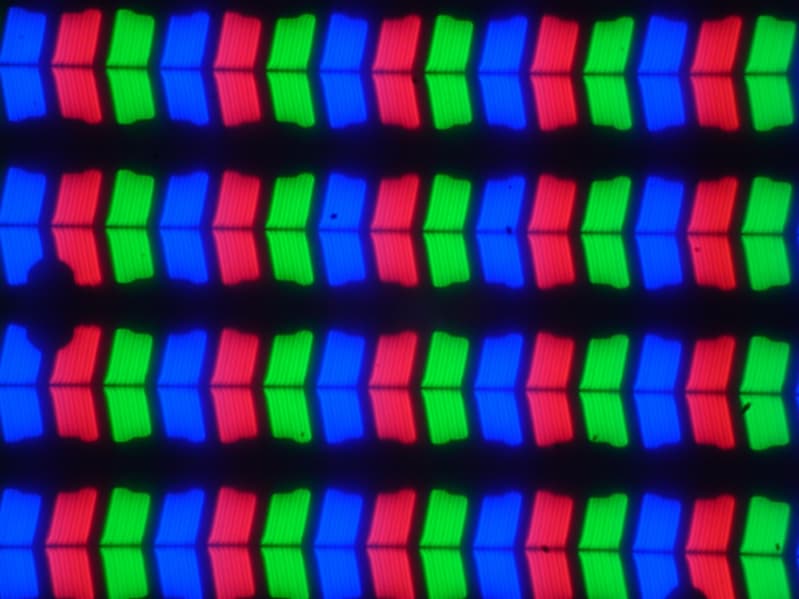 В данном Apple MacBook Pro 16″ (2021) используется матрица типа IPS. Микрофотографии демонстрируют типичную для IPS структуру субпикселей: